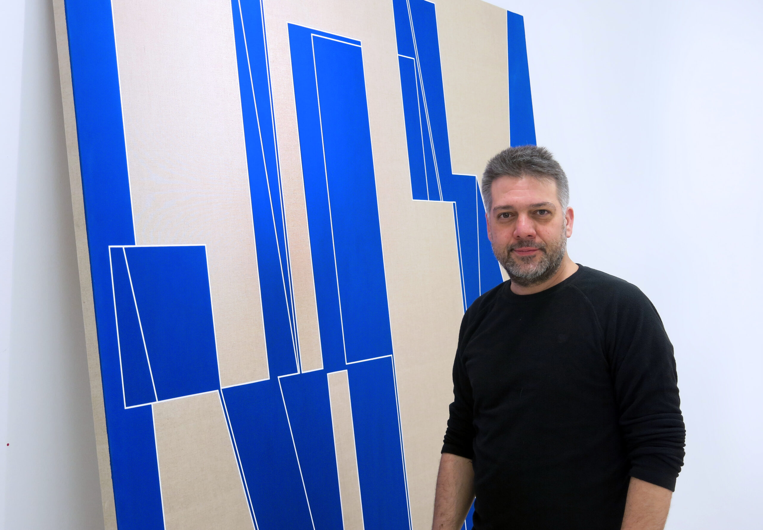 La exposición de Emilio Gañán (Plasencia, 1971), en el Palacio Quintanar, titulada JUEGO DE ESPEJOS [VOLÚMENES Y RETÍCULAS], se compone de un conjunto de varios ciclos o conjuntos que recorren sus últimos veinte años, entre otros: “Portal” (2001); “Viajeros” (2012); “Trapecios” (2021); “Umbral” (2021) o “Suite” (2023). Junto a ellos, obras recién concebidas, como la tridimensional “Sol de repetición” (2023), un colosal dibujo metálico en el espacio que se incorpora también a la muestra, al modo de un panorama de signos y ritmos que toman el espacio del patio del Palacio Quintanar, caligrafía inmemorial como si se tratase de un ideograma brotado antes del tiempo de la escritura.